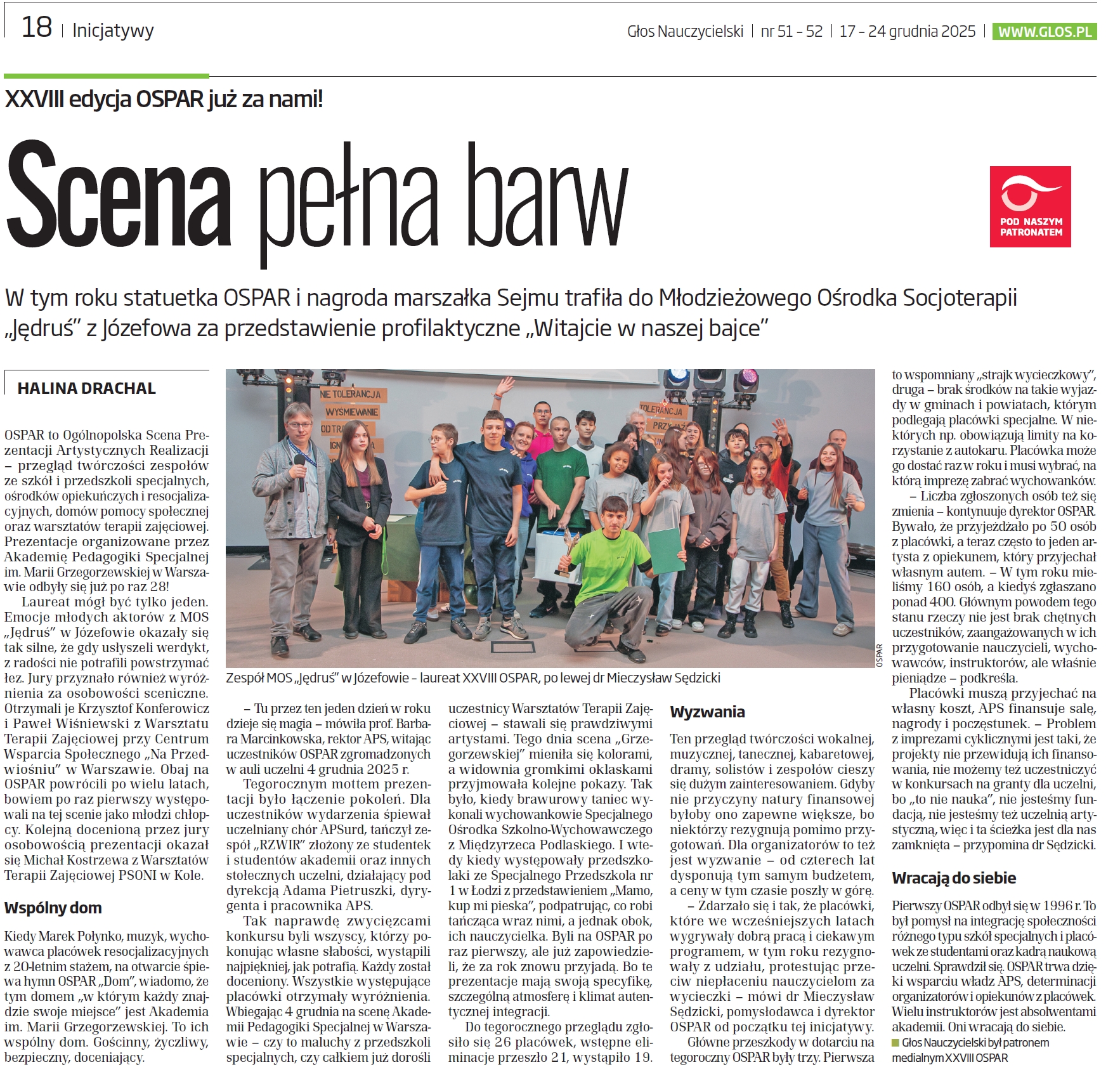 Artykuł dotyczący koncertu OSPAR w Akademii Pedagogiki Specjalnej im. Marii Grzegorzewskiej - 4 grudnia 2025