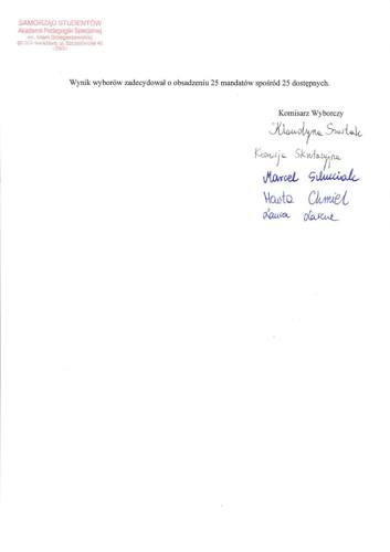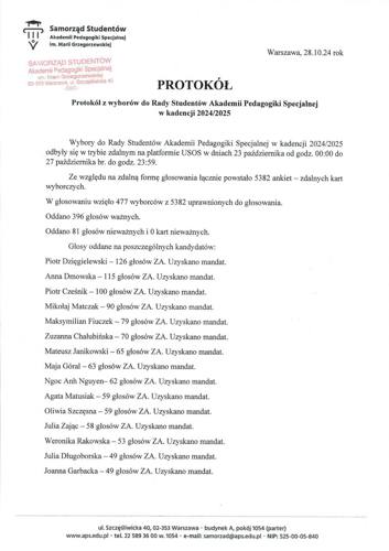 Protokół z wyborów do Rady Studentów kadencja 2024/2025